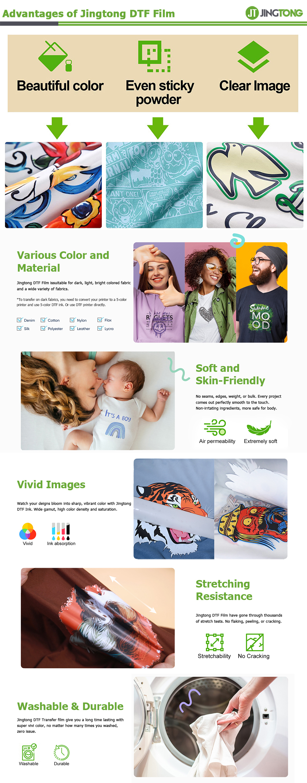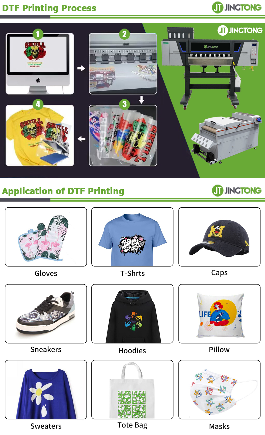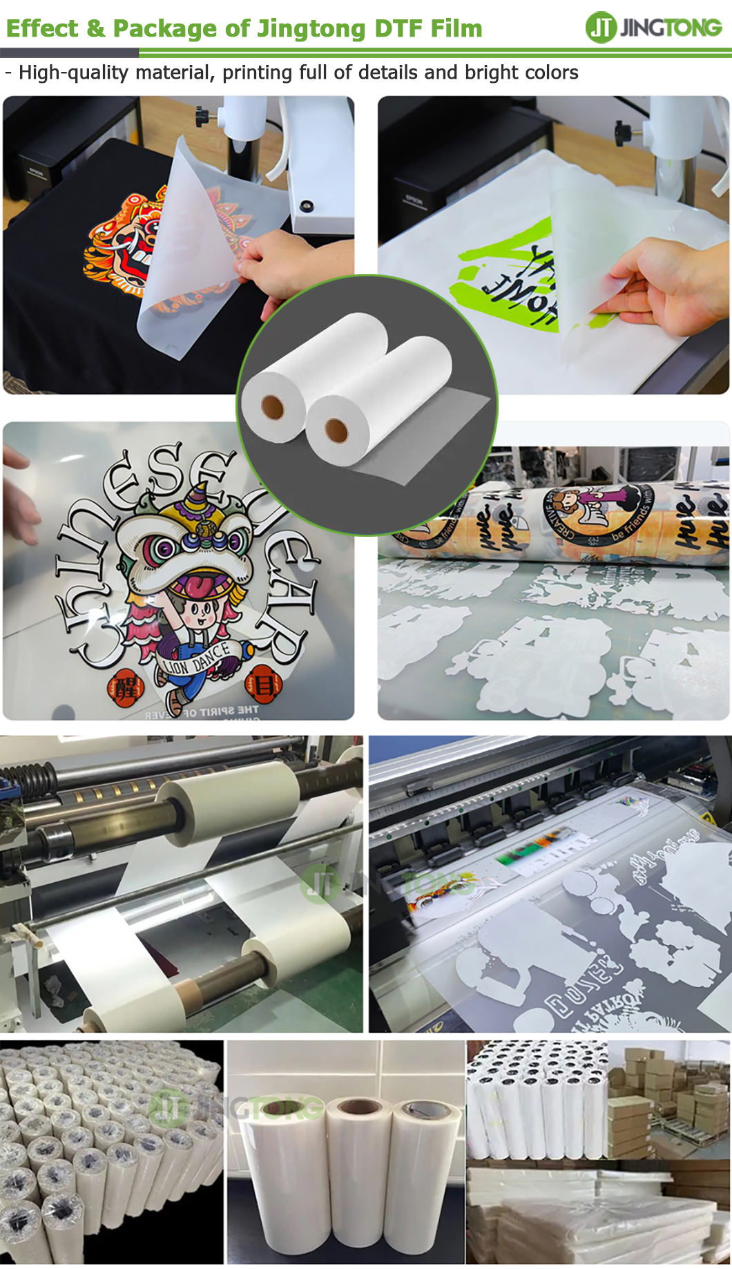 Jingtong DTF Transfer Film is used in the direct to film printing process. These films are different from those used for screen printing and have better transmission characteristics.